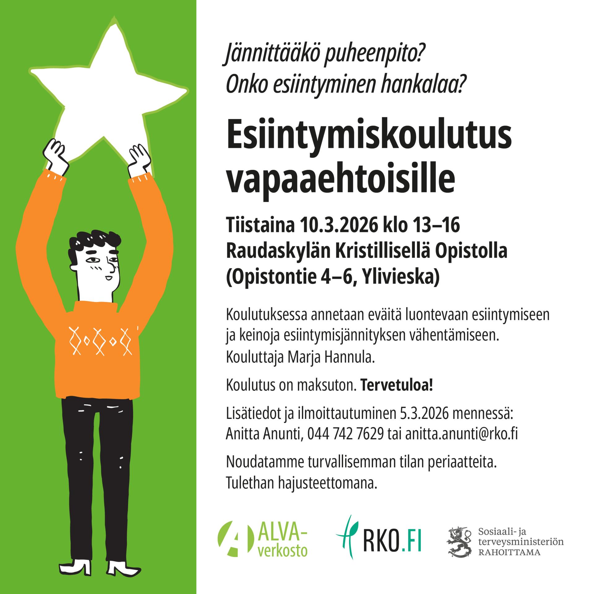 Koulutus antaa eväitä luontevaan esiintymiseen ja keinoja esiintymisjännityksen vähentämiseen.